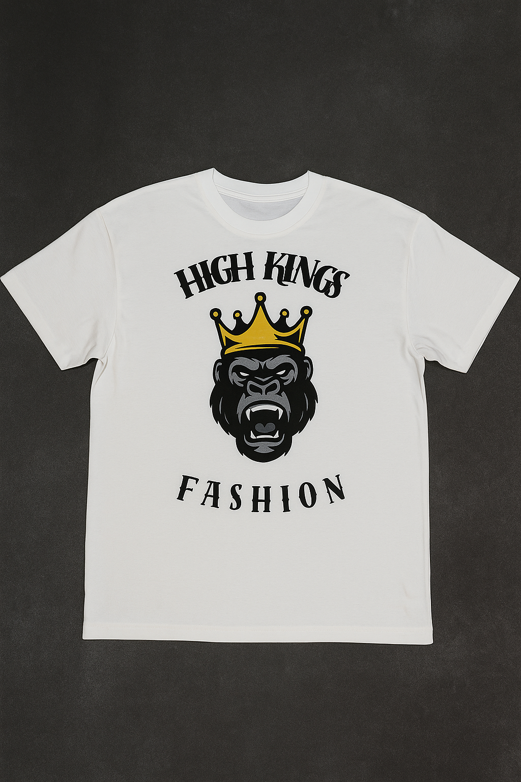 Step into bold streetwear with the High Kings Fashion “Crowned Gorilla” T-Shirt.